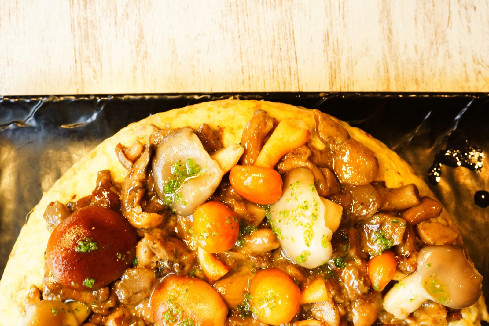 Tortillica de champis y setas. Por dentro y fuera. Para llevar